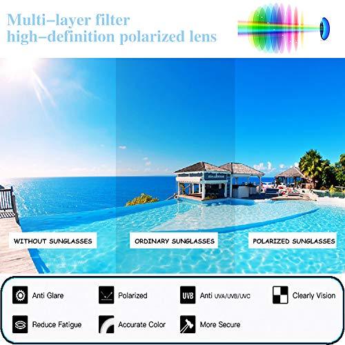 - 【POLARIZED SUNGLASSES for WOMEN】Polarized sunglasses block glare from light reflecting off flat surfaces better than any other type of sunglass lenses, you can enjoy the sunglasses when you spend a lot of time outdoors, on the road and particularly near water.